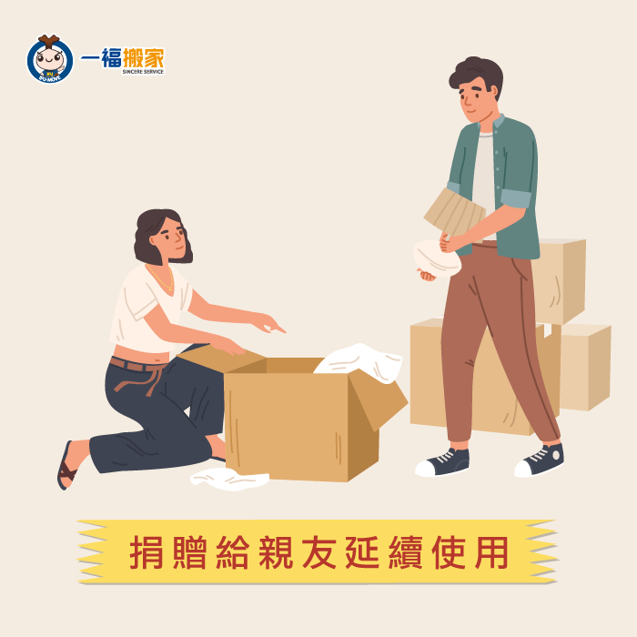 若是搬新家舊家具還能照常使用的狀態,可以選擇捐贈的方式讓舊家具可以繼續使用!可以找尋一些有需要的弱勢團體,或是親友做捐贈,使物品可以發揮最大的使用功效!運送方式可以以自行載運、租車運用等,亦可請親友自行來載運!